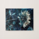 A beautiful blue and white floral that looks like a print made in the sunshine via Cyanotype with added mixed media ink splatter details.