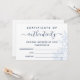 Chic minimalist certificate of authenticity in navy blue and white with hand drawn light blue flowers and greenery to which you can add your name or business name. Printed on a 5" x 7" card.