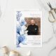 An elegant personalised photo blue floral order of service funeral memorial program. Designed by Thisisnotme©
