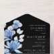Blue Floral Monogram Black and White Wedding All In One Invitation