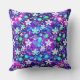 Blue Floral Pattern Throw Pillow - Deepspace / Universe - Detailed Edelweiss Flower Geometric Throw Pillow