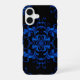 Blue Floral Pattern on Black Background iPhone 16 Case