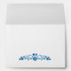 Blue floral envelope with hints of aquamarine. Elegant flowers, leaves, and hearts decorative border is versatile for a royal blue, crystal blue, winter blue wedding.