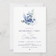 Blue floral retirement party invitation in a minimalist style with a blue flower bouquet and pattern back. You can personalise this invitation with your own details under the "Personalise this template" section.