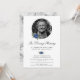 Blue Floral Silver Marble Photo Memorial Service Invitation