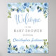 Blue floral silver rustic baby shower welcome sign