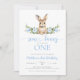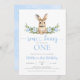 Blue floral spring rabbit some bunny is turning one boy first birthday invitation.