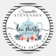 Blue Floral Tea Party Teapot Stripe Baby Shower Classic Round Sticker