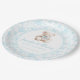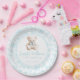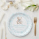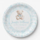 Blue chick floral pattern with cute blue teddy bear baby boy shower paper plates.