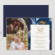This elegant navy blue and gold floral 50th wedding anniversary invitation can be personalised with your information in modern typography and two special photos. Designed by Thisisnotme©