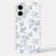 Blue Floral Toile Butterfly Monogram iPhone Case