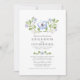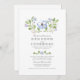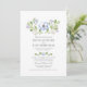 Blue floral watercolor wedding invitation with hand painted watercolor flowers and small leaves.