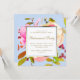 Beautiful watercolor floral bouquet with greenery, berries, and faux gold frame on the front of the card, and blue background with white polka dot pattern on the back of this trendy and elegant retirement party invitation.