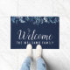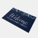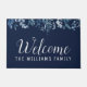 welcome typography with a family name and watercolor blue foliage. You can edit the colours and text on this mat