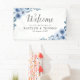 watercolor hand painted blue flowers with script and text. The colours and other features on this banner can be personalised.