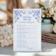 See how well the groom really knows his bride with this Blue Floral What Does the Groom Know? game. Featuring a timeless blue toile floral design, it’s perfect for a tea party bridal shower, something blue theme, or vintage-inspired celebration. Guests will love hearing his answers—funny, sweet, and maybe a little surprising!