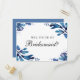 Blue floral Will you be my bridesmaid. Navy flower Invitation Postcard