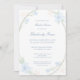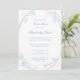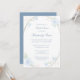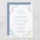 Bridal shower invitation for the Blue Floral Wreath Collection. The design evokes a sense of spring and new beginnings with its pastel hues. Blue watercolor blossoms, vines, and leaves frame the text on a white background. For contrast, the back of the card is a deep, dusty blue. Try this design on the elegant paper options, such as linen or pearl. The soft paper will enhance the delicacy of the blossoms. Perfect for a garden or springtime party.