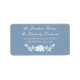 Large address label for the Blue Floral Wreath Collection. The design evokes a sense of spring and new beginnings with its pastel hues. Blue watercolor blossoms, vines, and leaves frame the text on a dusty blue background. Adds contrast to a white envelope. Perfect for a garden or springtime wedding.