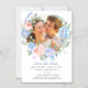 An elegant Boho Chic Save the Date card features a blush pink and pastel blue floral wreath. It is the open and airy leaves and greenery that give it its Boho vibe. This rustic design is perfect for an summer or spring wedding. It frames your favourite couple's photo. Save the Date, your names, wedding date and location are on the front. This save item is part of the Joyeux collection. It contains many DIY wedding stationery templates that will let you easily create a beautiful wedding invitation suite. You should see a link to it on this page. If you don't see the link or need help with an item, please contact me.