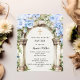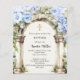 Blue florals arch beige boy Baptism invitation