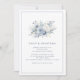 Blue Florals Border QR Wedding Evening Party. Available digitally and printed. An elegant nature inspired design. With a pale blue and white bouquet above simplistic and fully editable typography. Add your QR code to your wedding website on the back so your guests can RSVP and see all the details online without the need for separate enclosures. Text and background colours can be changed if you wish to better suit your wedding theme, as can the colour of the QR code, via the customise further option.