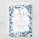 Blue Florals Border We Do Script Photo Wedding. Available digitally and printed. Botanical style for this blue and white flowers border design around the coorindating blue text. With a stylish set script for We Do taking centre stage at the top. The rest of the text you can easily personalise. Replace the sample image on the back with your own. You can delete the sample photo on the back if no photo is required.
