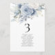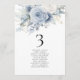 Blue Florals Names Seating Chart Table Number Card. Edit you number for each table and add to your cart separately. Same design is on both sides, use for a hanging display so guests can find their seat or display on each table. Beautiful dusty blue florals are at the top. Easily personalise the table number and your guest names. The same design is on both sides and will update simultaneously as you change the words to your own.