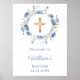 Blue florals wreath boy Baptism welcome Poster