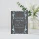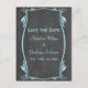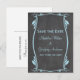 Elegant and trendy Flourish Chalkboard Save the Date Postcard featuring a chalkboard look background and a fancy swirl and leaf art deco border in light blue. Easy to customise, simply add your wedding details. Click "Customise It" to find more personalisation options.