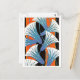 this Art Deco design has an orange background with several blue and white bell shaped flowers in the forefront.