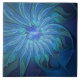 Blue Flower Fantasy Pattern, Abstract Fractal Art Ceramic Tile