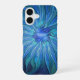 Blue Flower Fantasy Pattern, Abstract Fractal Art iPhone 16 Case