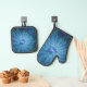 Blue Flower Fantasy Pattern, Abstract Fractal Art Oven Mitt & Pot Holder Set