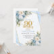Blue Flower Gold Accent 90th Birthday Party Invite