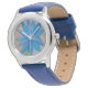 Vivid blue petals and a yellow center make for a cheerful, cute floral design. Imagining this adorable blue flower growing in a wildflower meadow or English cottage garden will bring you the joy of a hot summer afternoon every time you check the time.