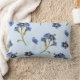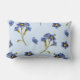 A printed blue-flowered throw pillow, can be used as a decor pillow or bed pillow