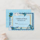 An elegant classic wedding invitation. The blue flowers and butterflies add to a scrap-booking feel to this beautiful wedding place card. A lovely blue gingham background supports ribbons and flowers for a unique theme. This look will go well at any wedding season, spring, summer, fall, or winter. Great for a modern wedding, and perfect for a classical wedding too!