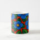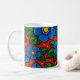 Blue Flowers and Green Leaves on a Red Background Coffee Mug