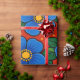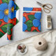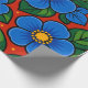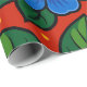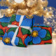 Blue Flowers and Green Leaves on a Red Background Wrapping Paper