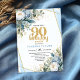 Blue Flowers Gold Glitter 90th Birthday Invitation