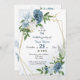 dreamy romantic blue flowers and white flowers and green leaves botanical geometric birthday party invitation