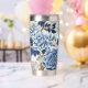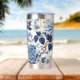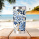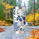 A Blue Floral On White Insulated Stainless Steel insulated Tumbler Drinking Glass