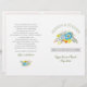 Folklore blue flowers modern floral booklet style folded wedding ceremony and party program featuring pretty vintage style flowers in light blue and yellow with green leaves, a grey banner and curved text with a whimsical font that looks like handwriting. This fresh and trendy template design is part of a wedding set and is completely customisable. Perfect for a rustic country spring or summer wedding. Fold it in the centre to have a folded style wedding program. Choose only this type of paper-value as it folds well.
