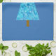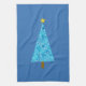 Blue flowers on a modern Christmas tree Tea Towel