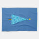 A simplified modern take on a classic Christmas tree motif towel, light blue tonal poinsettia flowers on deeper blue with a deep, midnight blue background