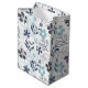 Pattern with blue and turquoise flowers. Beautiful gift bag for birthday gifts.