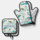 Blue Flowers, Pattern Of Flowers, Your Name Oven Mitt & Pot Holder Set