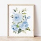 Blue Flowers, Watercolor Flowers, Boy Nursery Poster