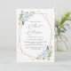 Invite friends and family in style and set the tone for your special day with this charming birthday invitation. Design features blue and white watercolor flowers, greenery, gold confetti and gold frame on white background.